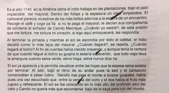 Hoy estoy revisando los textos y me encuentro con este de la foto. Al inicio empecé a leer y no entendía nada. Hasta pensé que el estudiante me había entregado por error un trabajo o texto de otra materia.